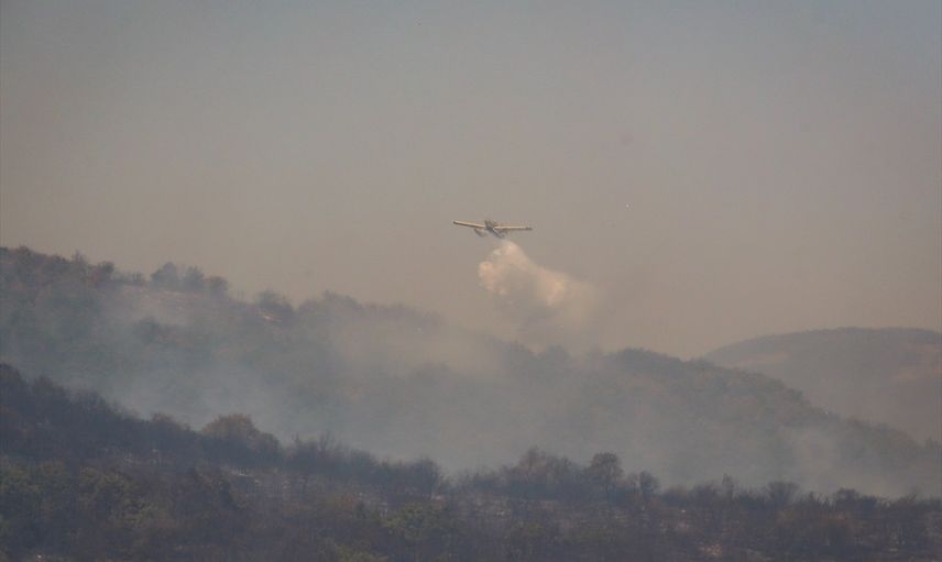 Bursa'nın İznik ilçesinde makilik alanda çıkan yangına havadan ve karadan müdahale ediliyor.