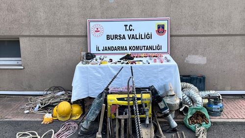 Bursa'nın Kestel ilçesi Kayacık Mahallesi'nde izinsiz kazı yapan 9 kişi, jandarma operasyonuyla suçüstü yakalandı; olay yerinde patlayıcı düzenekleri ve silah ele geçirildi.