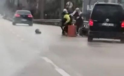 BURSA'NIN KESTEL İLÇESİNDE SEYİR HALİNDEKİ SÜRÜCÜ İLE KURYE ARASINDA ÇIKAN KAVGADA TEKME VE YUMRUKLAR HAVADA UÇUŞTU.