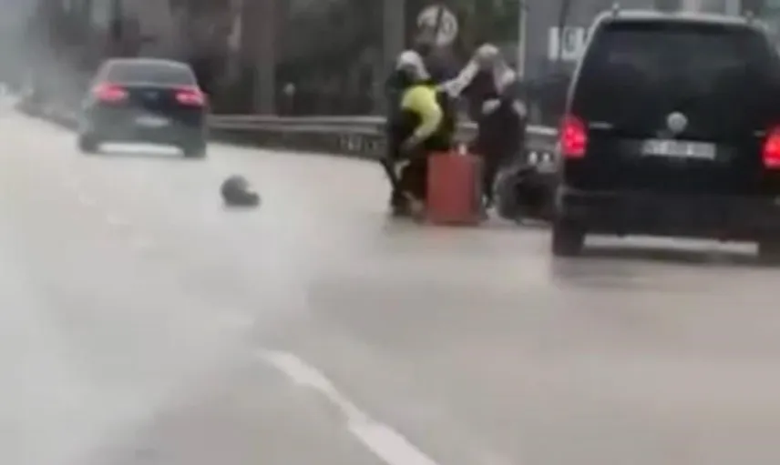 Tartışmanın ardından araçtan inen sürücünün motokuryeye yönelik fiziksel müdahalesi gerçekleşti. Görüntülerde, tekme ve yumrukların havada uçtuğu, müdahale etmeye çalışan kadınların olaya ayırma çabalarının olduğu ve bir çocuğun bu anları şaşkınlıkla izlediği görülüyor.