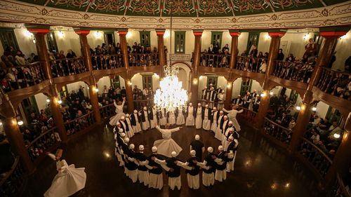 Bursa Mevlevihanesi'nde Türk Tasavvuf Musikisi ve Folklorunu Araştırma ve Yaşatma Vakfı ile Bursa Karabaş-ı Veli İcra Heyeti tarafından 'Devran-ü Kıyam ve Sema' icra edildi.