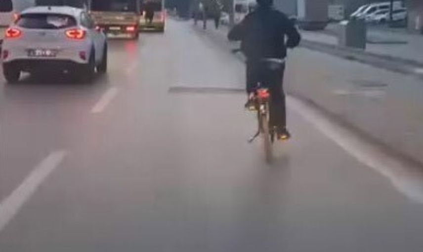 İlk kayıtta, yolun ortasında ilerleyen bir bisikletli görülüyor; araçların arasında herhangi bir görünür güvenlik önlemi olmadan seyretmesi dikkat çekti. Ardından kaydedilen diğer görüntüde ise bir genç, seyir halindeki bir halk otobüsünün arka tamponuna tutunarak gizli bir yolculuk yapıyor. Her iki genç de tehlikeye aldırış etmeden yollarına devam ediyor ve bu anlar saniye saniye kameraya yansıyor.