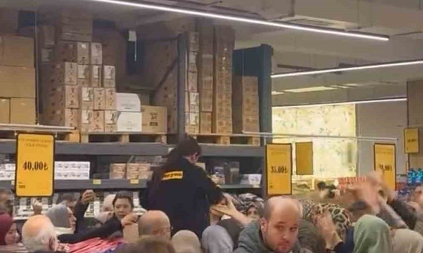 Bursa’nın Nilüfer ilçesinde bir süpermarkette düzenlenen indirim kampanyası sırasında yoğunluk oluştu ve olay kameralara yansıdı.