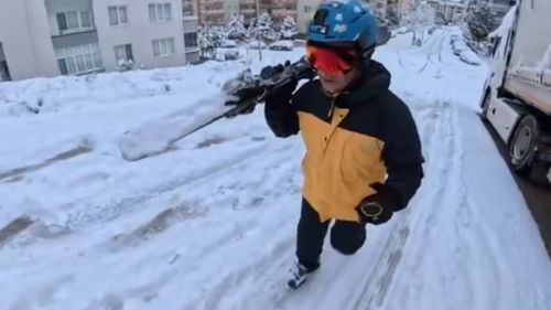 Bursa'nın Mudanya ilçesinde dün etkili kar yağışında bir vatandaş kayakla işe gidip görüntülerini sosyal medyada paylaştı; belediye ekipleri yol açma çalışmalarını sürdürüyor.