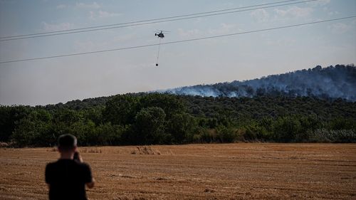 Bursa'nın Nilüfer ilçesinde Akçalar Mahallesi'ndeki ormanlık alanda çıkan yangına itfaiye ve Orman Bölge Müdürlüğü ekipleri müdahale ediyor.