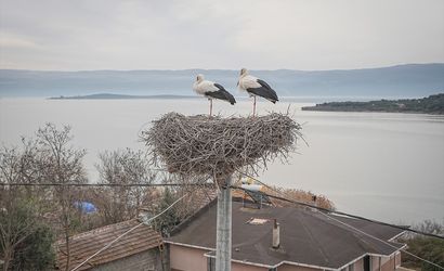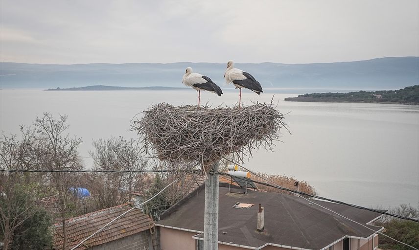 Bursa'nın Karacabey ilçesinde, Uluabat Gölü'nün kıyısındaki kırsal Eskikaraağaç Mahallesi'nin simgesi olan 'Yaren' leyleği, 14. yılda da geri dönerek balıkçı Adem Yılmaz'ın kayığına kondu.