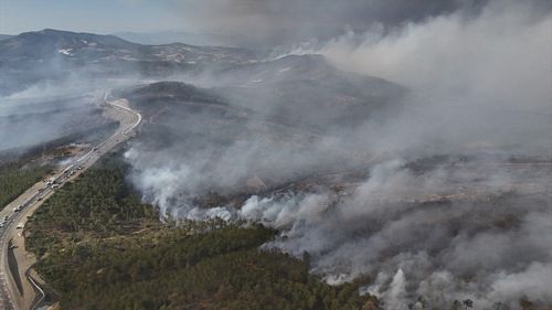 Bursa'nın Orhaneli ilçesinde rüzgarın etkisiyle büyüyen orman yangınına müdahale sürüyor, mahalleler tahliye ediliyor.
