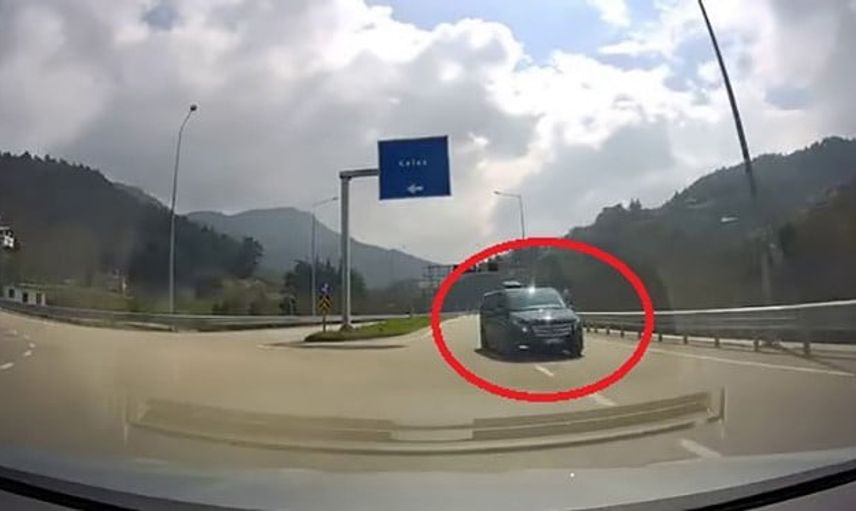 Sürücünün yaptığı ani manevra sonucu, iki araç arasında kafa kafaya çarpışma eşiği aşılamadı ve muhtemel bir kaza önlendi. O anlar, sürücünün aracına ait araç kamerasına yansıdı.