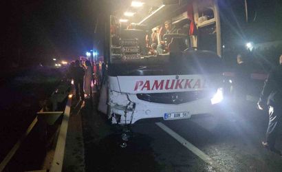 Bursa Orhangazi'de park halindeki otomobil yolcu otobüsüne çarptı