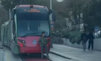 Edinilen bilgiye göre, Bursa'nın Osmangazi ilçesinde seyir halindeki bir tramvayın arka bölümüne tutunup oturarak ilerleyen bir çocuk, çevredeki vatandaşların tepkisini çekti.
