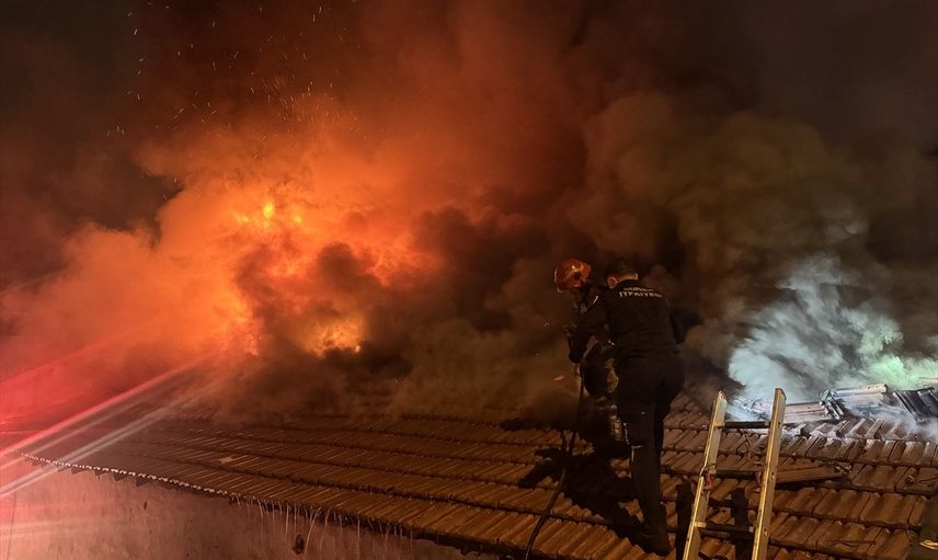 Bursa'nın Osmangazi ilçesine bağlı Küplüpınar Mahallesi 8. Aksu Sokak'ta, otomotiv yedek parçaları satılan bir iş yerinde henüz belirlenemeyen nedenle yangın çıktı.