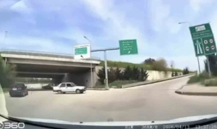 Bursa Şehir Hastanesi Otoban Bağlantı Kavşağı’nda seyir halindeki bir araç sürücüsünün karşısına, ters yönden gelen başka bir araç çıktı. Sürücünün Bursa-Ankara otobanı istikametine geçiş yapmak isterken yaptığı manevra, trafikte paniğe neden oldu.