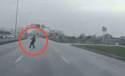 Sürücülerin o anları izlediği ve yaşananların bir cep telefonu kamerasına yansıdığı belirtildi. Görüntülerde, karşıya geçen kişinin trafikteki araç hareketliliği arasında ilerlediği ve ardından ara sokaklara girerek gözden kaybolduğu görülüyor.