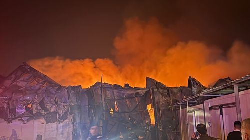 Bursa'nın Yıldırım ilçesinde, gıda deposunda meydana gelen yangına itfaiye ekipleri müdahale ediyor.