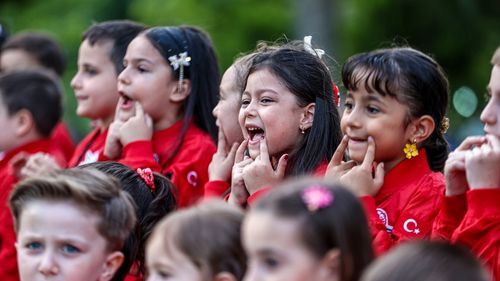 Bursa'daki anaokulu öğrencileri, TEKNOFEST montlarıyla yerli savunma sanayisi araçlarını tanıtan klip çekimlerini yeniledi.