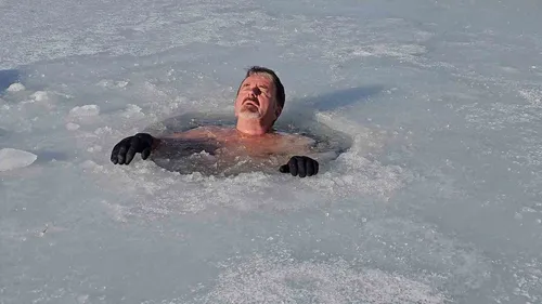 Bursalı dağcı İsmet Şentürk, 6 yıldır Uludağ’ın buz tutan göllerinde buz kesip suya girme geleneğini bu yıl da sürdürdü.