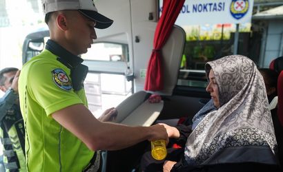 Yapılan denetimlerde otobüslerde emniyet kemeri, takometre ve lastik kontrolleri yapılıyor. Polis ekipleri, şoförlere ve yolculara broşür dağıtarak bilgilendirme faaliyetinde bulunuyor. Ayrıca, şoför ve yolculara kolonya ikramında bulunarak kurallara uymanın faydalarını anlatıyorlar.