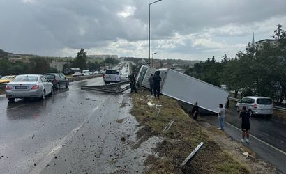 Büyükçekmece'de sağanak nedeniyle kayganlaşan yolda devrilen kamyonun sürücüsü hafif yaralandı. D-100 kara yolu Güzelce mevkisinde Mimaroba istikametine seyir halindeki Mehti K. yönetimindeki 34 KCN 652 plakalı kamyon, sağanağın da etkisiyle kayganlaşan zeminde kontrolden çıktı. Bariyerleri aşarak yaklaşık 2 metre aşağıda bulunan yan yola düşen aracın sürücüsü hafif yaralandı. Olay yerine polis ve sağlık ekipleri sevk edildi.