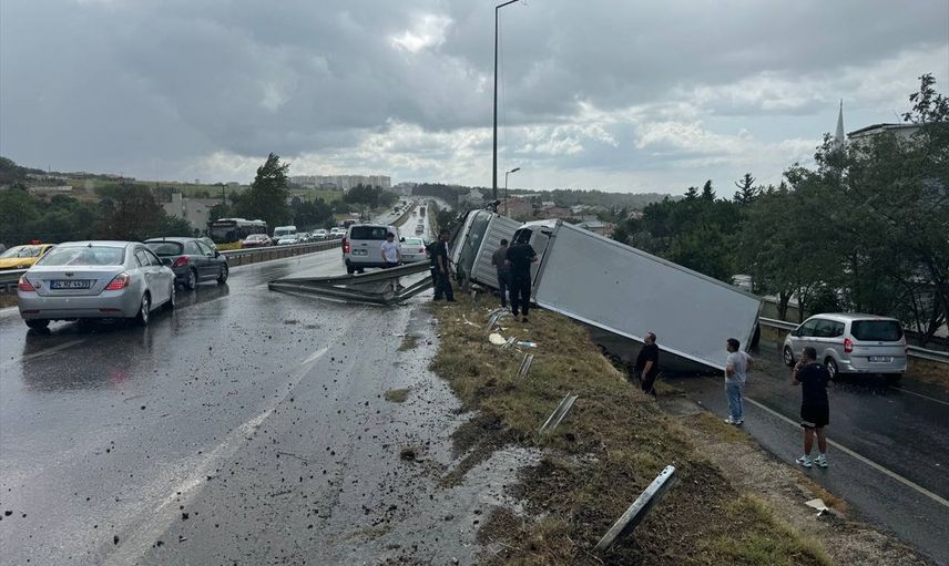 İstanbul'un Büyükçekmece ilçesinde meydana gelen kamyon kazası, sağanak yağışın etkisiyle kayganlaşan yolda sürücüyü zor durumda bıraktı.