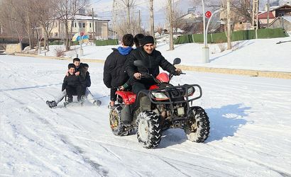Belde halkı, yarım metrelik buzla kaplanan nehirde kızaklarla kaymanın tadını çıkarıyor. Bazı kişiler, arkasına kızak bağlanan ATV'lerle nehir boyunca tur atıyor. Beldede yaşayan Adem Erbay, “Havaların soğumasıyla birlikte nehrin buzla kaplandığını gördük. Bunu fırsata çevirdik ve etkinlik düzenledik. Burada güzel vakit geçirdik” şeklinde konuştu.