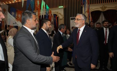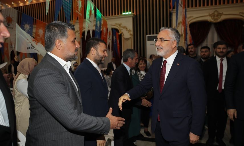 Çalışma ve Sosyal Güvenlik Bakanı Vedat Işıkhan (sağda), Diyarbakır'daki temasları kapsamında merkez Yenişehir ilçesindeki bir düğün salonunda düzenlenen AK Parti Yenişehir 6. Olağan Kongresi'ne katıldı.