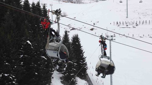 Çambaşı Kayak ve Dinlenme Tesisleri'nde düzenlenen tatbikatta, itfaiye, AFAD, UMKE, sağlık ve jandarma ekipleri 25 metrede mahsur kalan 4 kişiyi kurtardı.