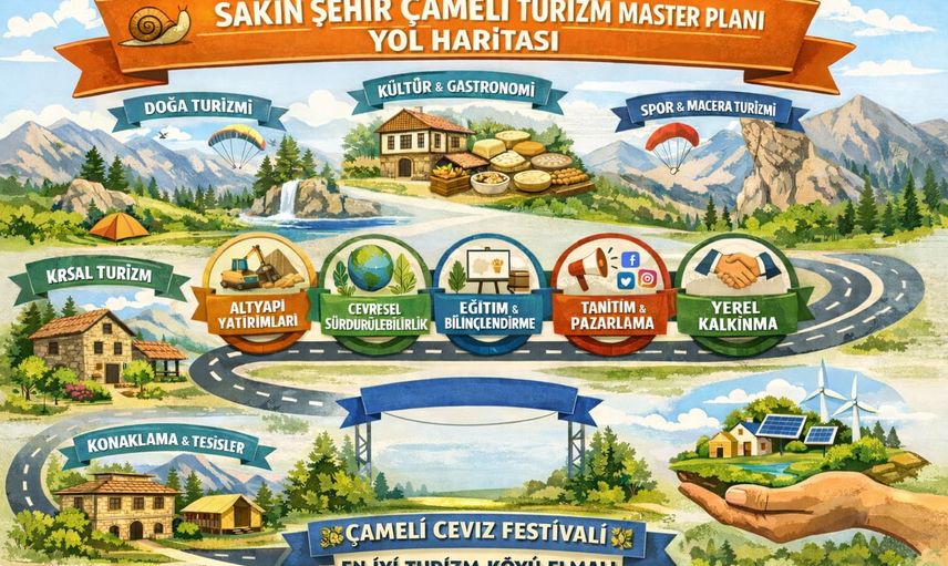 Denizli’nin Sakin Şehir Çameli ilçesi için hazırlanan Turizm Master Planı kapsamında, 2026–2030 dönemine yönelik yol haritasının sonuç raporu kamuoyuna açıklandı. Raporda planlanan eylemler, sorumluluk dağılımı ve iş birliği yapılacak kurumlar ayrıntılı şekilde yer alıyor.