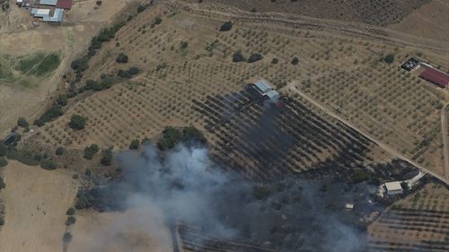 Çanakkale'nin Ayvacık ilçesinde zirai alanda çıkan yangına havadan ve karadan müdahale ediliyor.