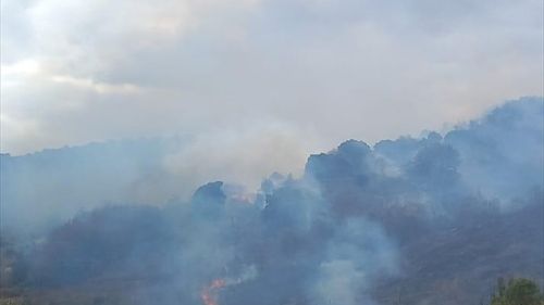 Çanakkale Biga'daki yangın, havadan ve karadan ekipler tarafından kontrol altına alınmaya çalışılıyor.