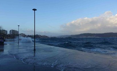 Meteorolojinin önceki gün yaptığı fırtına uyarısı kentte sabah saatlerinden itibaren etkisini gösterirken, yetkililer olumsuz hava koşulları sürdüğü sürece seferlerin ve geçişlerin güvenlik gerekçesiyle geçici olarak askıya alınabileceğine işaret etti.