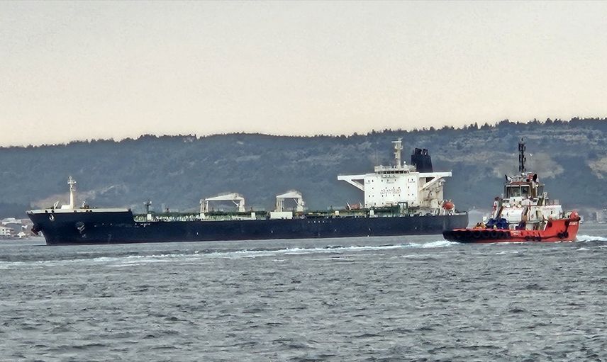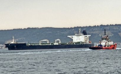 Çanakkale Boğazı'nda arızalanan ham petrol tankeri, Bozcaada Demir Sahası'na çekildi.