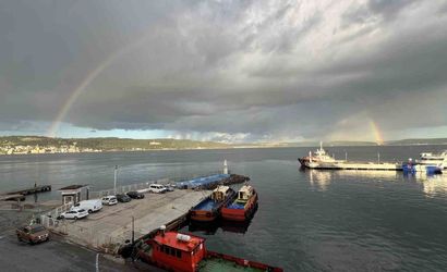 Çanakkale Boğazı'nda günün ilk ışıklarıyla çifte gökkuşağı