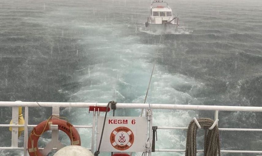 Çanakkale Boğazı’nda makine arızası yapan tekne KIYEM-6 ile Lapseki’ye yedeklendi