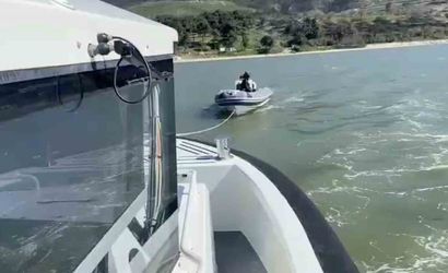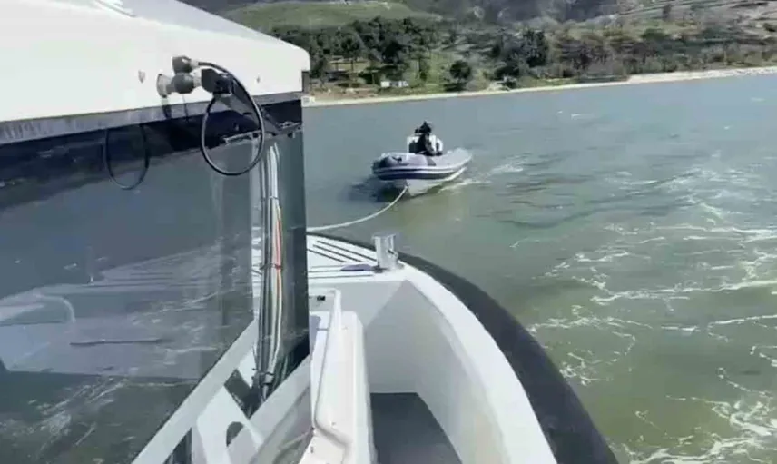 Lastik botun bulunduğu mevkinin sığlık olması sebebiyle müdahalede, Sahil Güvenlik Botu ‘KB-73’ ile halat verilerek bot emniyetli su derinliğine yedeklendi.