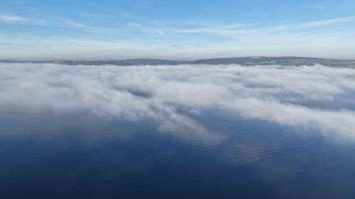 Çanakkale Boğazı'nda yoğun sis nedeniyle transit geçişler durdu — Dron görüntüleri