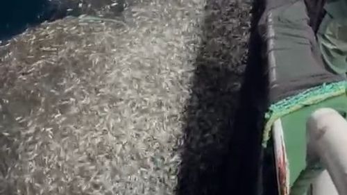 Çanakkale'de balıkçılar ağlarına takılan binlerce yavru kupes balığını denize geri saldı
