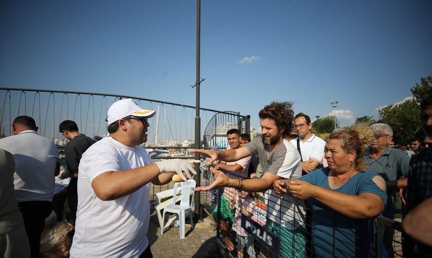 Dernek Başkanı Şef Osman Demirci ve dernek üyesi şefler, ikram edilen sardalyaları pişirerek ekmek arasında vatandaşlara sundu. Sardalya yemek isteyen vatandaşlar, limanda uzun kuyruklar oluşturdu. Demirci, bu lezzetli balığın bayram dolayısıyla ikram edildiğini belirtti: "Denizlerin fasulyesi" olarak tanımladığımız sardalyayı toplamda 5 bin kişilik olarak ikram ediyoruz. Adeta halkımızla beraber güzel bir şölen yaşıyoruz.