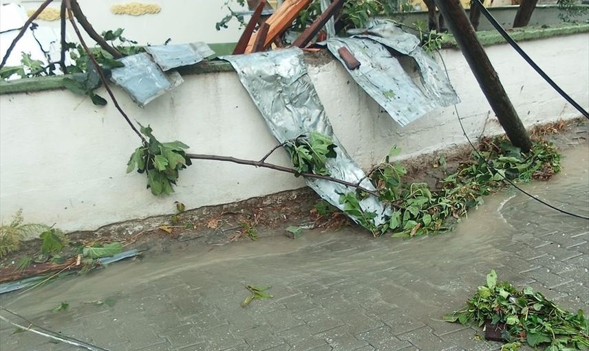 Yaklaşık 10 dakika süren şiddetli yağmur, rüzgarın da etkisiyle bazı yapılar üzerinde hasara neden oldu. Özellikle bir restoranın çatısında zarar oluştu.