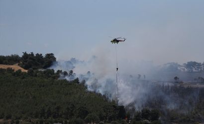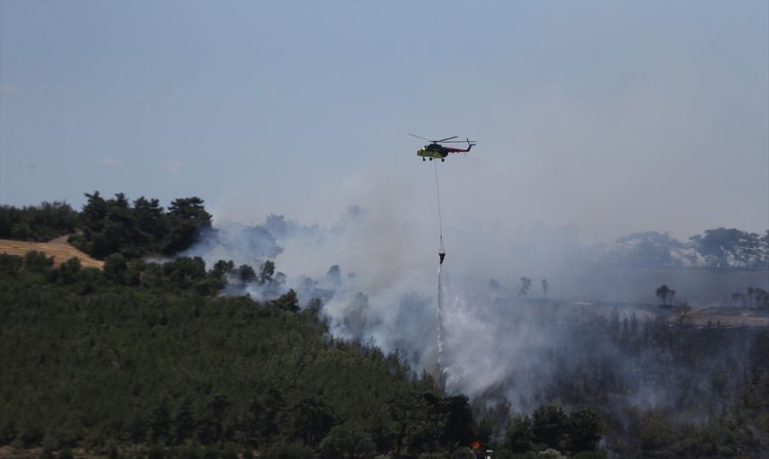Çanakkale'de tarım arazisinde çıkan ve ormanlık alana yayılan yangına havadan ve karadan müdahale ediliyor.