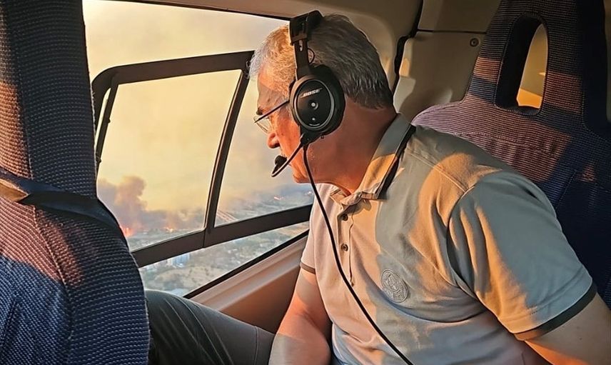 Orman işçileri, bölgedeki şiddetli rüzgara rağmen yangın söndürme çalışmalarını büyük bir özveriyle sürdürüyor.