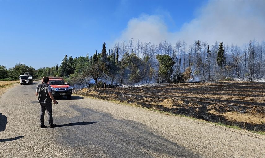 Çanakkale'nin Eceabat ilçesinde çıkan orman yangınına havadan ve karadan müdahale edildi.
