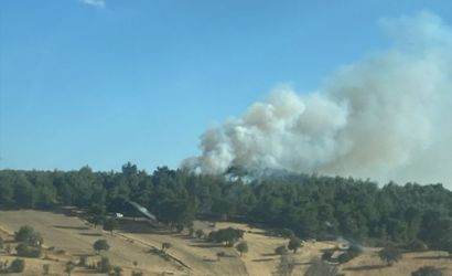 Çanakkale'nin Ezine ilçesinde tarım arazisinde başlayıp ormanlık alana sıçrayan yangına havadan ve karadan müdahale ediliyor.