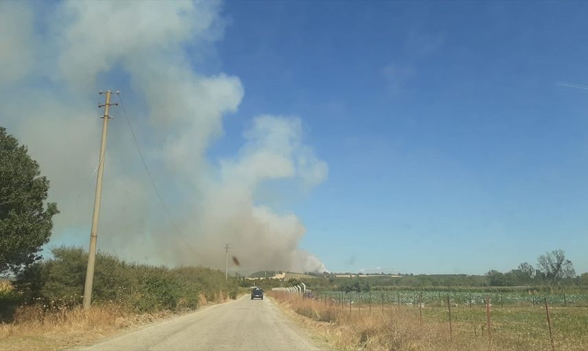 Çanakkale'nin Ezine ilçesinde, Akköy ile Güllüce köyleri arasındaki zeytinlikte bilinmeyen nedenle yangın çıktı.