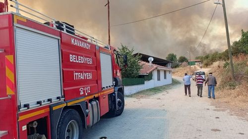 Gelibolu'da tarım arazisinde çıkan yangına müdahale ediliyor, alevler ormanlık alana sıçradı.