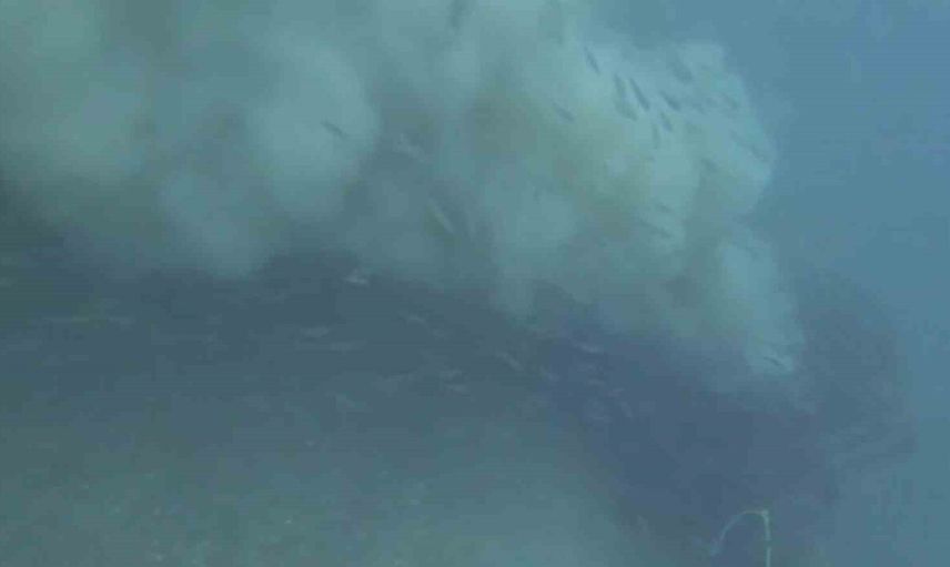Turan, balık avı için dalış yaptığı sırada 12-13 metre derinlikte pis bir suyun denize aktığını fark ettiğini ve merak ederek bu anları kaydettiğini söyledi.