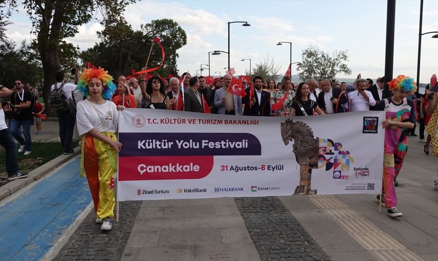 Kültür ve Turizm Bakanlığınca düzenlenen Çanakkale Kültür Yolu Festivali kapsamında kortej yürüyüşü gerçekleştirildi.