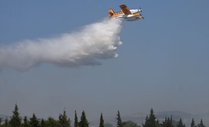 Çanakkale'de merkeze bağlı Özbek köyündeki tarım arazisinde çıkan yangına havadan ve karadan müdahale ediliyor.