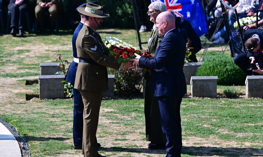 Dua edilmesinin ardından, Çanakkale Valisi Ömer Toraman, Kraliyet Prensesi Anne, Yeni Zelanda Başbakanı Luxon ve diğer ülkelerin temsilcileri çelenk bıraktı. Saygı duruşunun ardından, İstiklal Marşı ve Avustralya milli marşı seslendirildi.