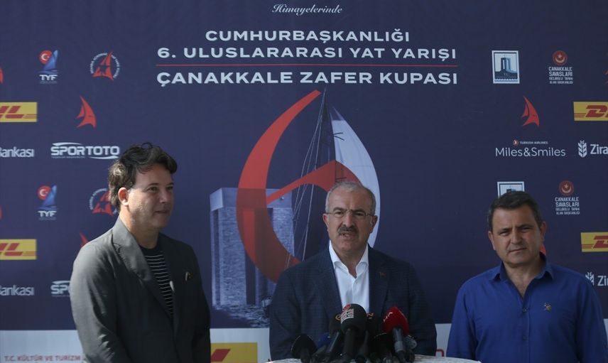 Cumhurbaşkanlığı 6. Uluslararası Yat Yarışları'nın üçüncü etabı olan Çanakkale Zafer Kupası gerçekleştirildi. Çanakkale Valisi Ömer Toraman (ortada), Çanakkale Savaşları Gelibolu Tarihi Alan Başkanı İsmail Kaşdemir (sağda) ve Cumhurbaşkanlığı Uluslararası Yat Yarışları Organizasyon Komitesi Başkanı Ekrem Yemlihaoğlu (solda) yarışlar öncesi konuşma yaptı.