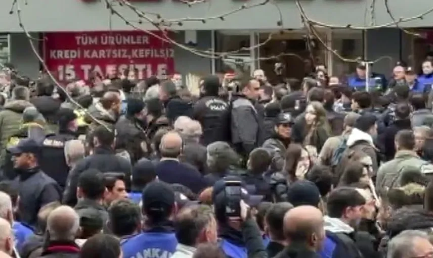 ÇANKAYA BELEDİYE BAŞKANI HÜSEYİN CAN GÜNER'İN, BELEDİYE BİNASI ÖNÜNDE YAPTIĞI AÇIKLAMA SIRASINDA VATANDAŞLAR ARASINDA GERGİNLİK ÇIKTI